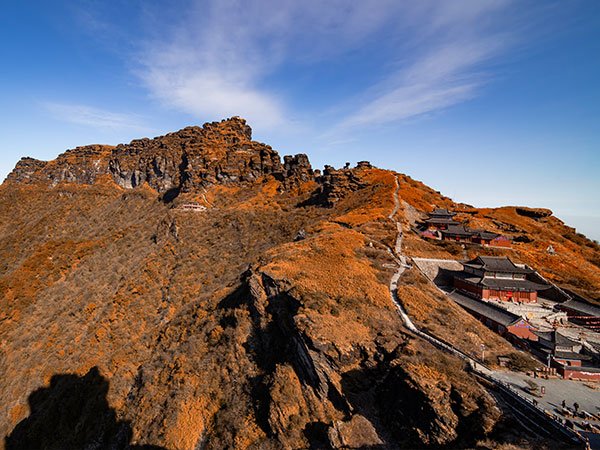 Experience the mystical beauty and spiritual heritage of Mount Fanjing, a UNESCO World Heritage site in Guizhou, China. This 3-day guided journey takes you from Tongren to the mountain’s summit via scenic cable car and forested trails. Encounter the surreal Mushroom Stone, climb the legendary Old Golden Summit, and ascend the dramatic Red Clouds Golden Summit, known for its twin Buddhist temples balanced atop a narrow spire. Surrounded by lush subtropical forests, Fanjingshan is a biodiversity haven home to rare species like the Guizhou golden monkey and ancient Fanjingshan firs. With local accommodation and a knowledgeable guide, this tour blends nature, culture, and comfort into a memorable adventure.