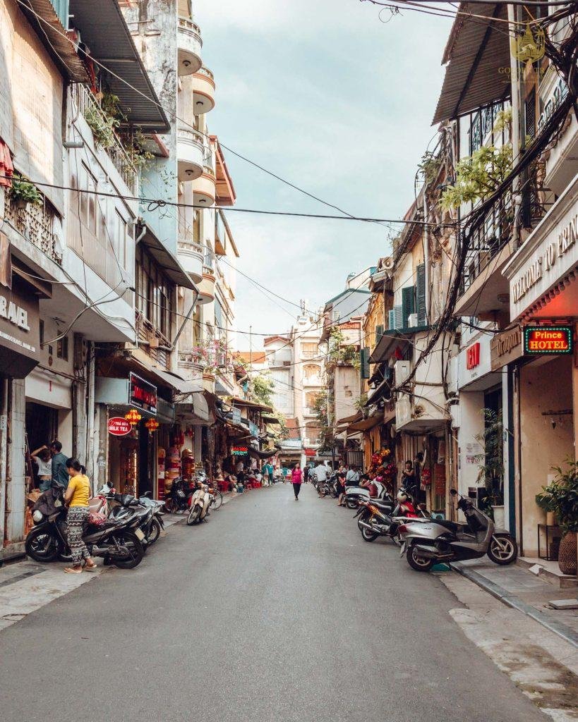 In the evenings, the narrow streets are filled with small plastic stools and tables, where both locals and tourists gather to enjoy inexpensive draft beer, known locally as bia hoi.