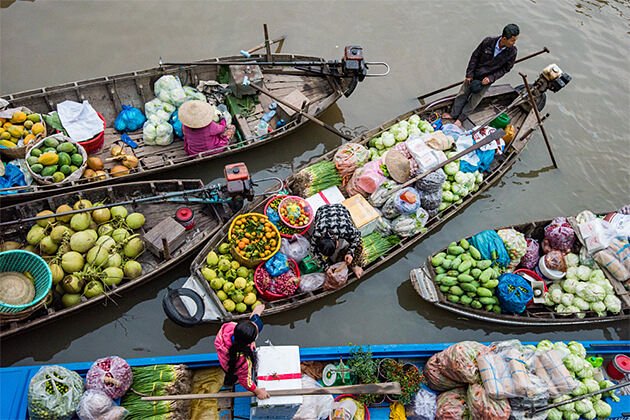 This morning, transfer to remote My Tho. This burgeoning capital rests in the Mekong Delta and is surrounded by beautiful countryside known as the "rice basket of Vietnam". First visit Vinh Trang Pagoda, decorated with mosaics made from broken pottery. Overlooked by a tall white Buddha, it is set amongst lovely gardens overflowing with flowers, shrubs, lotus pools and tombs and ornate gates which provide entry. Continue on a boat ride along the river to view the stilt houses, fruit plantations and fishing villages.