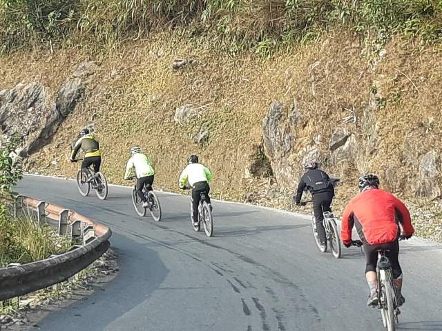 Today's ride from Dong Van to Yen Minh is a slightly more relaxed day, allowing you to immerse yourself in nature's beauty. The route features gentle slopes and winding roads through valleys and hills. You'll be captivated by the scenic terraced rice fields carved into the steep mountainsides and dense pine forests that are so rare in Southeast Asia. The day’s highlight is an exciting downhill ride at Tham Ma Pass (Nine-Lamp Pass), a thrilling descent that offers a fantastic rush as we head back toward Yen Minh.