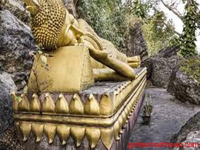 Then, go to visit the Pak Ou Cave which locates by the Mekong River. Here, you will discover a number of gold lacquered Buddha statues in the cave.
