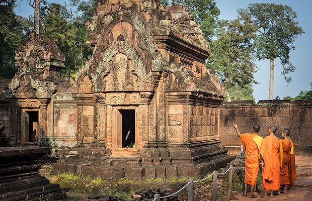 After lunch and a rest break, set out to the jungle-enveloped Ta Prohm – one of the most atmospheric of all temples in Angkor. Once home to 2,740 monks, Ta Prohm today looks much as it did in the early 1850s, when French explorer Henri Mouhot 'rediscovered' this crumbling site. After exploring the maze-like interior of Ta Prohm, continue to see a sunset at Bakheng Mountain before returning back to your hotel.