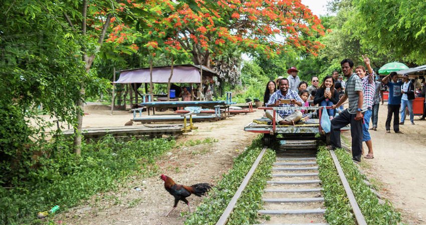 Bamboo Train Adventure: Enjoy a one-of-a-kind ride on the famous 'norry,' a bamboo platform on a railway track, through scenic rice fields.