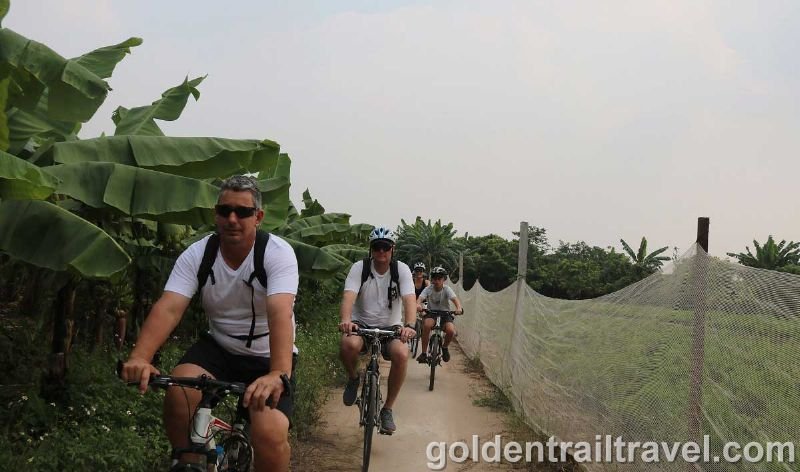 Cycle Through Authentic Rural Landscapes: Pedal along quiet, flat paths winding through lush farmlands, vegetable patches, and fruit gardens, experiencing the tranquility of the Vietnamese countryside.