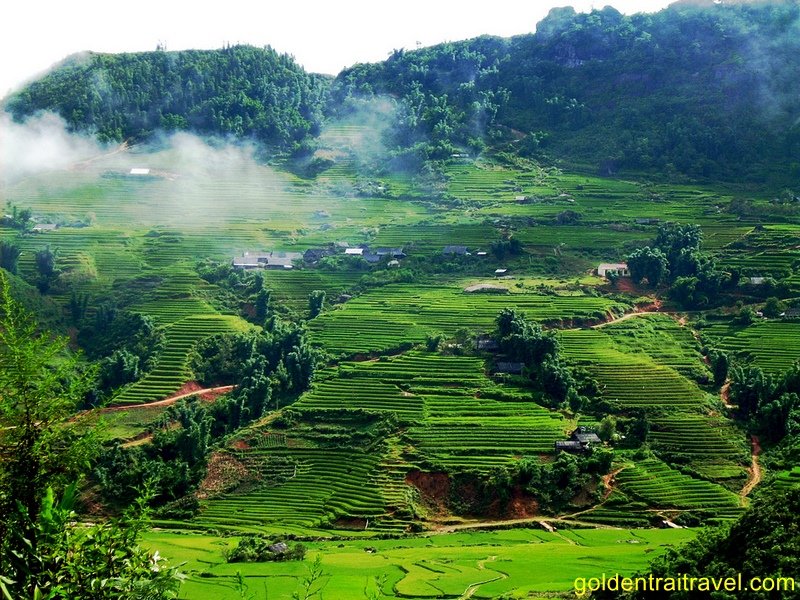 Explore the Idyllic Mai Chau Valley: Cycle through the famous, tranquil Mai Chau valley, renowned for its vast emerald rice fields and the distinctive traditional stilt houses of the White Thai ethnic group.