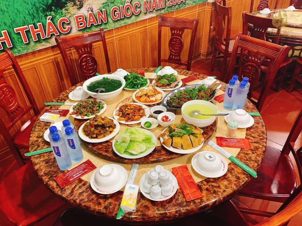 Stop for lunch near Truc Lam Ban Gioc Pagoda, enjoying local specialties like grilled fish, bamboo shoots, and sticky rice wrapped in banana leaves — flavors that capture the spirit of the mountains.