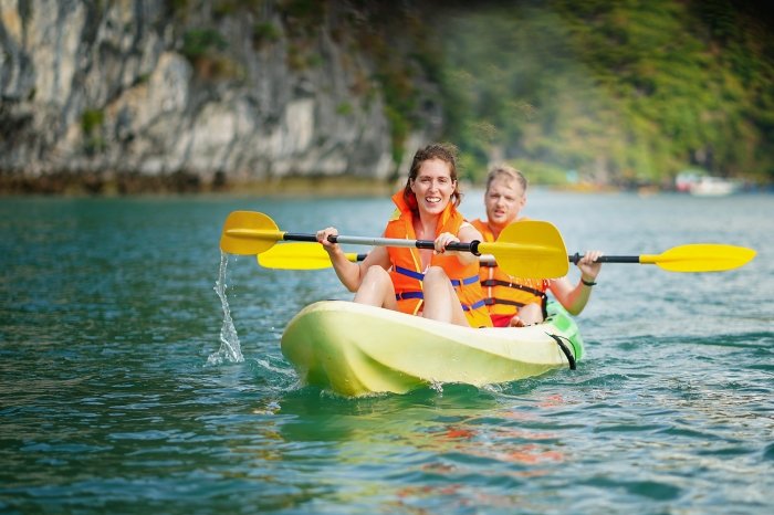 Extensive Kayaking in Lan Ha Bay: Explore the pristine and less-crowded emerald waters of Lan Ha Bay, paddling through hidden lagoons, secret grottoes, and discovering untouched beaches and rock arches.