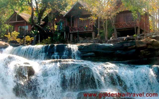 Mighty Khone Phapheng Falls: Marvel at the raw power of Khone Phapheng Falls, Southeast Asia's largest waterfall by volume, an impressive natural spectacle.
