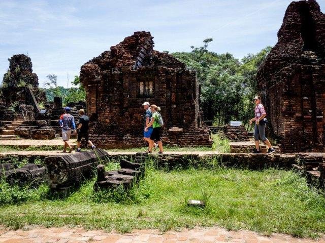 My Son Sanctuary by Bike: Experience the historical significance of My Son Sanctuary after a picturesque bike ride through serene landscapes, marveling at its intricate temple ruins set amidst a jungle backdrop.