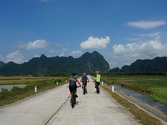 Scenic Countryside Cycling: Pedal along peaceful backroads, through vibrant rice paddies, and past dramatic limestone karsts, experiencing authentic rural Vietnamese life.