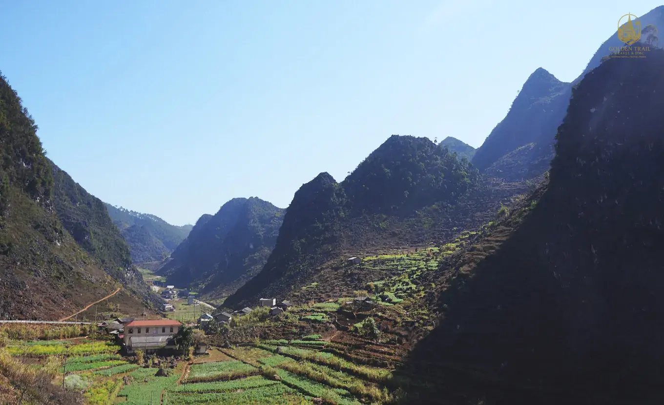 Today is a day of breathtaking landscapes as we travel to Dong Van. The scenery along the route is magical, and we will make a stop to visit a village of the Bo Y people, a small ethnic community with Chinese origins. We'll then pause at Quan Ba Pass to admire the famous Twin Fairy Mountain before continuing to the Limestone Rock Plateau, a UNESCO-recognized World Geological Park. Along the way, we'll discover the unique "Nha Trinh Tuong" houses of the H'mong people in Lung Hoa Village and visit the historic Palace of the H'mong King. We'll arrive in Dong Van, a town filled with charm and history, to relax for the night.