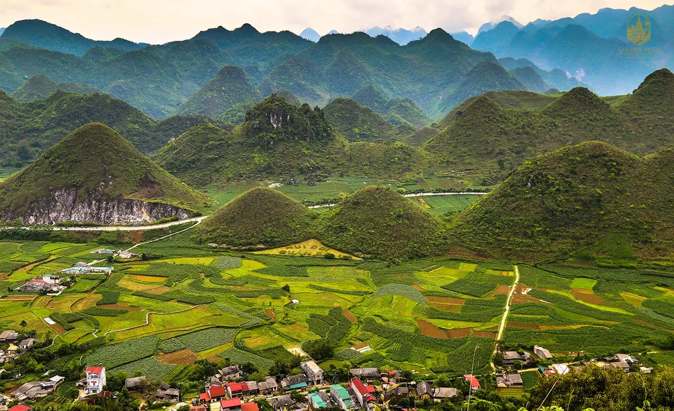 Today, we travel to Dong Van, exploring the magical landscapes of this incredible region. Our first stop is a village of the Bo Y people, a small community with a unique history and culture. We will then stop at Quan Ba Pass to admire the famous Twin Fairy Mountain. The journey continues to the Limestone Rock Plateau, which has been recognized as a World Geological Park. We'll explore a typical H'mong house, known as "Nha Trinh Tuong," in Lung Hoa Village. We will also visit the Palace of the H'mong King, a historical site that tells the story of the region's past. We'll arrive in Dong Van, a town filled with charm and history, for the night.