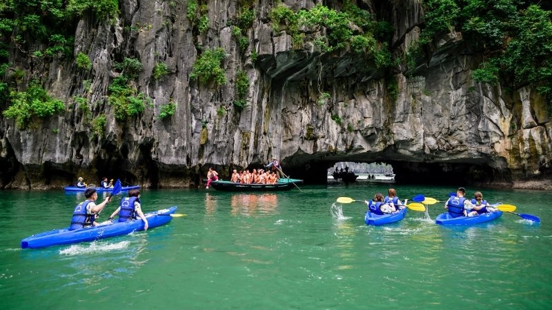 Our adventure begins with a seamless transfer from Hanoi, whisking you away to the gateway of this natural wonder. As you set sail, the panoramic views of thousands of jungle-clad islets emerging from the mists will unfold before your eyes – a truly awe-inspiring spectacle. Every turn of the cruise reveals a new vista, a unique formation sculpted by millions of years of wind and water. This tour emphasizes active engagement with the environment, making kayaking a central and exhilarating part of your experience. Imagine paddling through hidden lagoons, silently gliding beneath colossal arches, and discovering secluded coves that are inaccessible to larger boats. This up-close encounter with Halong Bay's intricate cave systems and untouched corners offers unparalleled photo opportunities and a profound sense of connection with nature.