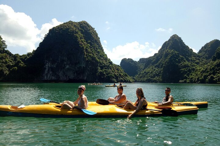 This 4-day itinerary isn't just about kayaking; it’s a holistic exploration. You’ll have the opportunity to explore magnificent caves such as Sung Sot Cave (Surprise Cave), a colossal subterranean wonderland, and ascend Ti Top Island for breathtaking panoramic views that stretch across the entire bay. Beyond the iconic sights, we’ll venture into less-frequented areas, potentially exploring parts of Lan Ha Bay or Bai Tu Long Bay, where the untouched beauty remains pristine and the atmosphere is even more serene. You’ll gain insights into the local culture with visits to secluded fishing villages, observing the traditional way of life that thrives amidst this watery landscape. Each evening brings the promise of gourmet dining onboard, featuring freshly caught seafood and authentic Vietnamese delicacies, all savored under the vast canopy of stars. Engage in relaxing activities like squid fishing, participate in an onboard cooking class to learn local recipes, or simply unwind on the sundeck. Our professional, friendly, and knowledgeable crew are dedicated to ensuring every aspect of your journey is seamless, comfortable, and truly unforgettable. This Halong Bay Kayaking Tour 4 Days is more than just a vacation; it's an adventurous expedition, a cultural immersion, and a chance to deeply connect with one of the world's most magnificent natural masterpieces