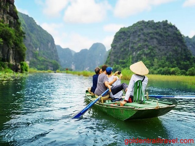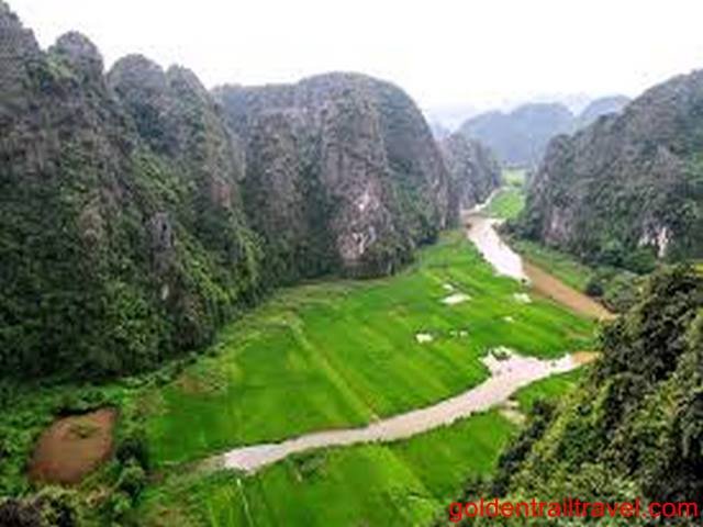 Tam Coc is situated 6 km south of Ninh Binh city, in the middle of the rice fields and lime peaks. The area is somewhat similar to Halong Bay (it is well known as “Halong Bay on Land”), but more accessible. The main attraction of Tam Coc is the boat ride between the cliffs of the river and through 3 tunnels dug by the river through the peaks.
