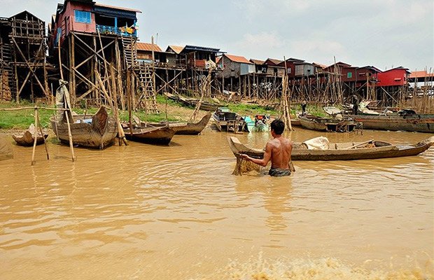 Afterwards, visit of one of the most impressive floating village in Cambodia, Kompong Khleang. Board a boat and discover the village and the astonishing flooded forest. Come lunch time, you will be taken to a stilt house in the village to share a typical Khmer lunch with friendly locals. Once you have finished lunch, get back on board to reach a pagoda located on an island where you will walk by the monk school and observe monks in their day-to-day routine.
