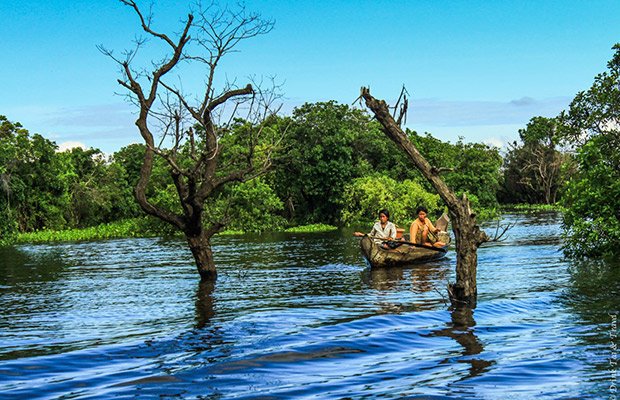 Please note: Depending on the time of year and the water levels, you will either sail down the main street of Kompong Phluk village (when the water is high the roads become a river) or walk along it.