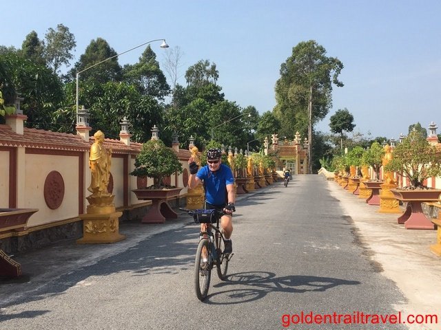 Hidden Backwater Cycling (Day 4): Explore the hidden backwaters of the Mekong Delta on narrow paved roads, venturing into lesser-known areas and charming towns like O Mon or Binh Thuy, for an authentic and peaceful cycling experience away from the main tourist routes.