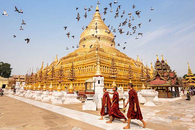 Check out at the hotel this morning and transfer to the airport. Depart for Bagan by a domestic flight (scheduled flight) (1 hour 20 minutes flying). Arrive Nyaung – U Airport, first visit to Nyaung-Oo morning Market to see people ways of life. The day with visits to the most significant pagodas and temples of Bagan including Shwezigon Pagoda built by King Anawrahta in the early 11th as a religious shrine. Visit Ananda Temple a whitewashed masterpiece of Mon architecture with four standing Buddhas, and the adjacent brick monastery with the beautiful well – preserved 18th-century murals. Visit Thatbinnyu Temple know as “temples of omniscience” and dating from 1144.