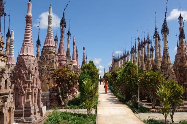 This morning take a flight to Heho. Upon arrival, continue traveling by road to Taunggyi and more one hour to Kakku. Gaze out at the great complex of over 2000 stupas as you head to Kakku Pagoda.