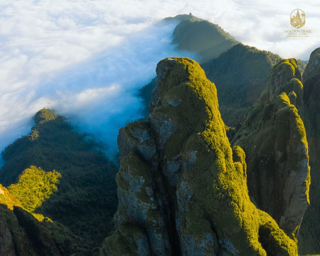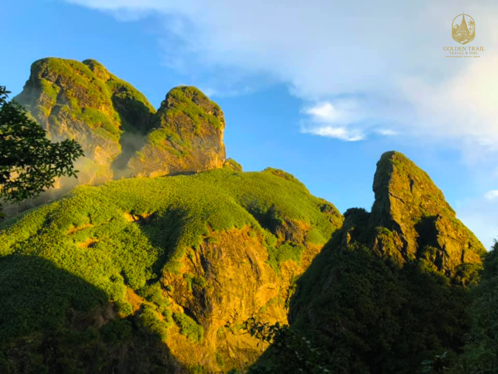 Over two action-packed days, you will embark on a journey that is as physically demanding as it is visually spectacular. The trek begins from the remote village of Nam Sang, a secluded gem that serves as our gateway to the mountain. From there, you will step into a world of untouched nature, traversing dense primeval forests with towering ancient trees and a unique, vibrant ecosystem. The trails are rugged, unpaved, and authentic, offering a true sense of adventure far from the usual crowds. You will be fully supported by our experienced local guides and porters, who possess intimate knowledge of the mountain and its unique terrain. Their expertise ensures your safety and enriches your journey with valuable insights into the local flora, fauna, and culture of the region.