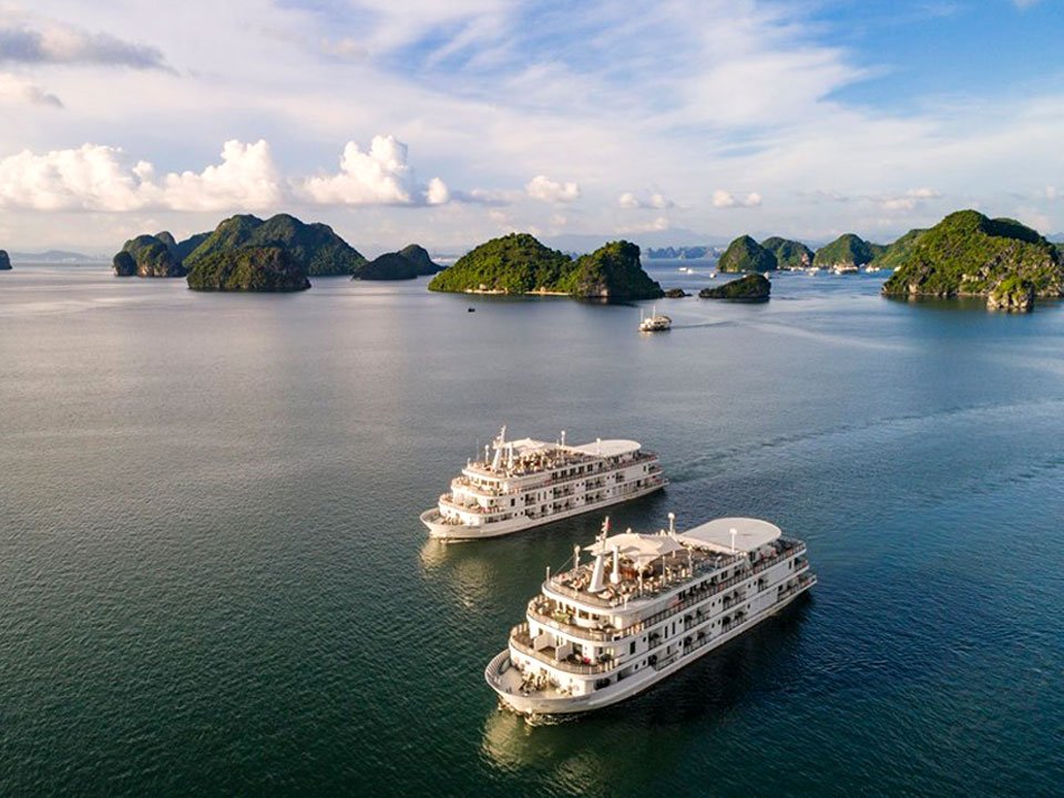 During the afternoon, discover some of the treasures spread across the Bay of the Descending Dragon: fascinating caves, pristine beaches, picturesque floating villages, fantastic rock formations rising up out of emerald water. While onboard, you can take advantage of the leisure of the Spa, Beauty & Massage services; surrounded by a stunning setting in motion, you can attend the chef's cooking demonstration and try your skills in the art of traditional Vietnamese cooking.