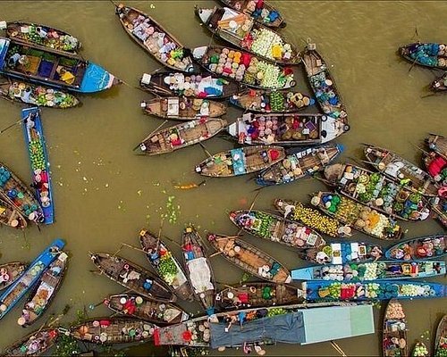 Rise early in the morning for breakfast at your hotel where your private guide and driver will meet you to escort you to the pier of Can Tho for an adventure on the river. Your motorboat and captain will greet you and help you onboard. You'll be taken to the largest floating market in Can Tho where local farmers bring their bulk products for sale.