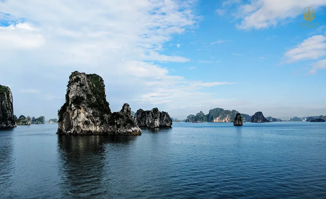 Your unforgettable Halong Bay cruise experience begins with a welcome drink and safety briefing, followed by a delicious lunch as the vessel sails into the pristine, less-traveled waters of Lan Ha Bay. Feel a sense of peaceful awe as you glide past towering limestone karsts, including the iconic Finger and Candle Islets.
