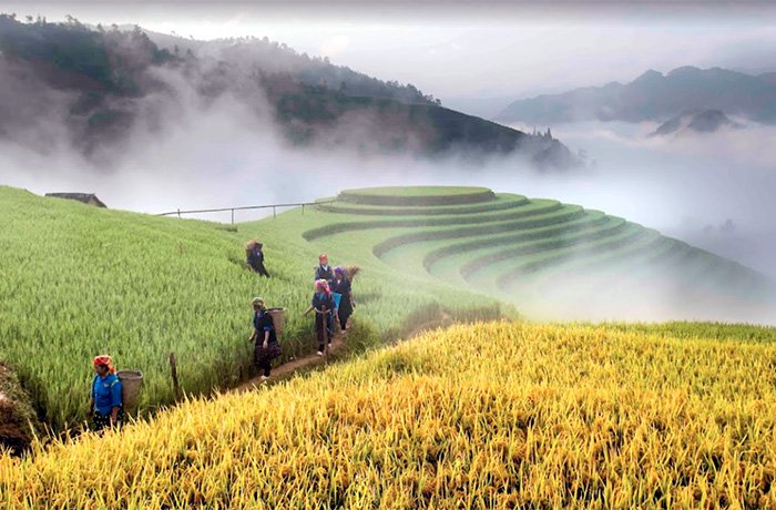 Explore Majestic Sapa & Its Terraces: Journey to Sapa, famous for its iconic terraced rice fields that cascade down mountainsides. Discover local markets and interact with ethnic minority groups like the H'mong and Red Dao.