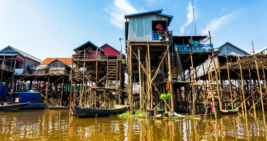 Witness Unique Stilt Architecture: Marvel at the ingenious design of towering stilt houses and genuine floating homes, built to adapt to the dramatic seasonal changes in Tonle Sap Lake's water levels.