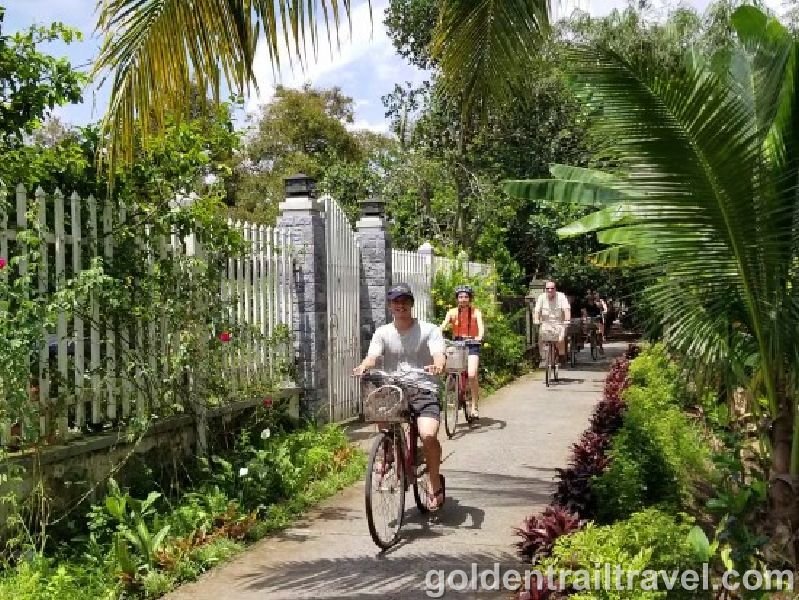 Visit one of the plenty of coconut processing workshops where coconut candies are made and have a chance to learn the coconut candies making process located along canal. Turn on natural scissors creeks where they look smaller and smaller to go to village. Take a walk to family workshop making sleep mats. Afterward, being on a cart powered by a motorbike or biking and traveling through some tranquil villages where vegetables gardens to be able to touch on real life and find out about tropical culture from Peasants. Lunch at local restaurant.