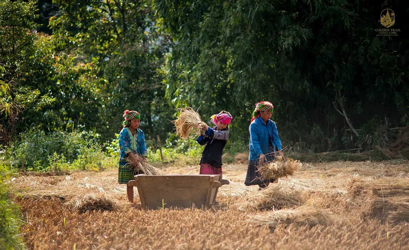 The climax comes as we conquer the Khau Pha Pass, which offers a splendid panoramic view of the valley. Continue to the legendary photo route of La Pan Tan and Mam Xoi (Raspberry Hill). Hike amongst these majestic, layered masterpieces created by Hmong peasant artists over generations. Feel an exhilarating sense of conquest as you stand amidst these breathtaking, monumental golden landscapes. Dinner and overnight at a local homestay, surrounded by the quiet splendor of the terraces.