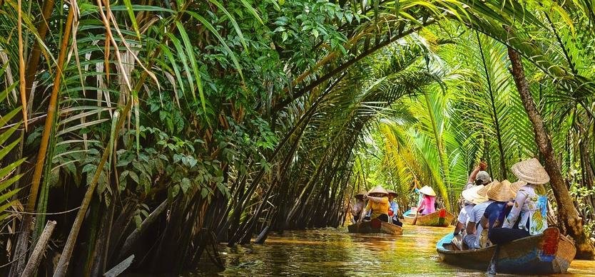 Traditional Boat Trip on Mekong River: Enjoy scenic cruises along the main branches and smaller, picturesque canals of the Mekong River.
