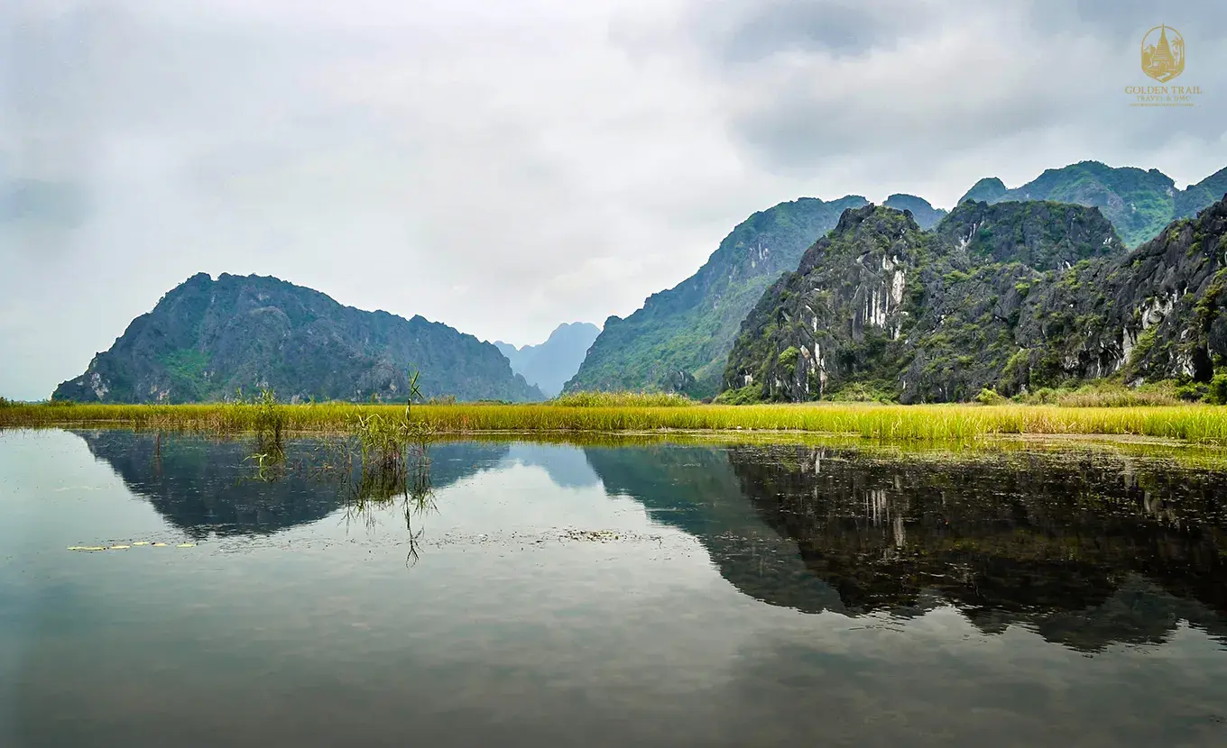 Breathtaking Karst Landscapes: Discover the "Ha Long Bay on land" in Ninh Binh landscape, enjoying serene boat trips through emerald rice paddies and towering limestone karsts.